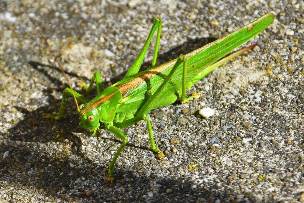 Journée superbe et ensoleillée, même la sauterelle apprécie la chaleur et en profite. Ciel clair, léger vent d'E, température 19°