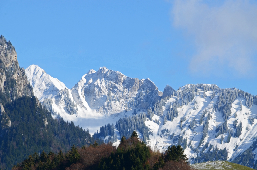 Chaîne des Bruns 2200m. Il a neigé la nuit dernière mais la couche reste faible. Vent d'est modéré, température en début d'après-midi 5°