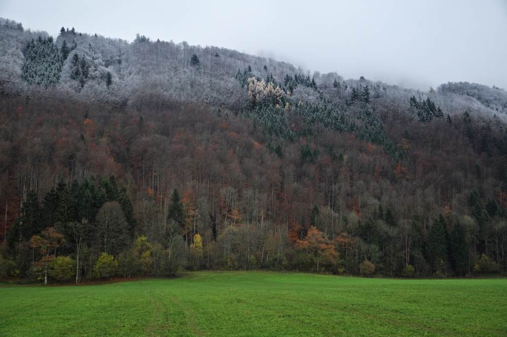 Limite pluie neige à 800 m. La ligne est bien marquée sur cette photo. Léger courant de sud-est. Température 3° en début d'après-midi