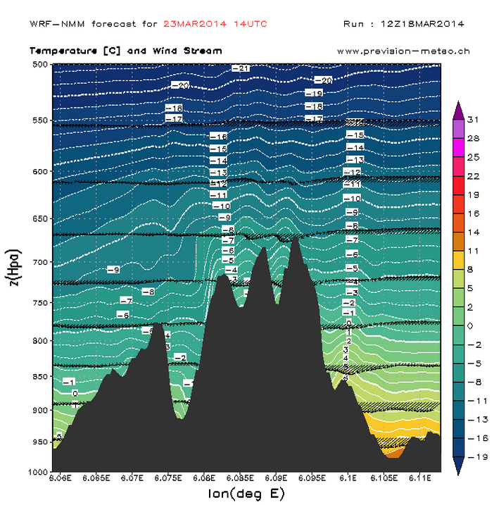 Cet outil vous permet de générer facilement des coupes verticales de l'atmosphère d'un point A vers un point B, et ce depuis n'importe quel point situé en Suisse, France ou Belgique.