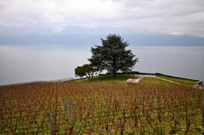 Image prise vers 14h30 / Ciel bien gris sur de brèves éclaircies au-dessus du Lavaux arrière-plan le Léman .
