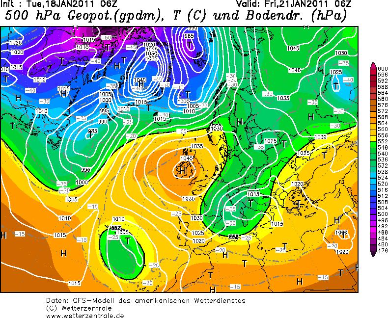 Les trois illustrations ci-dessous nous montrent l’évolution pour cette fin de semaine prévue par le modèle GFS à 500 hPa, soit pour jeudi, vendredi et dimanche prochains.